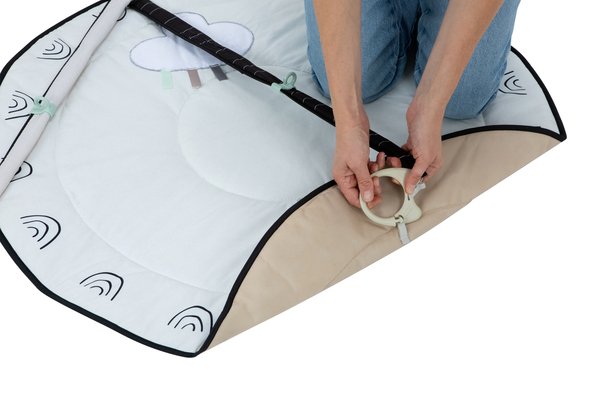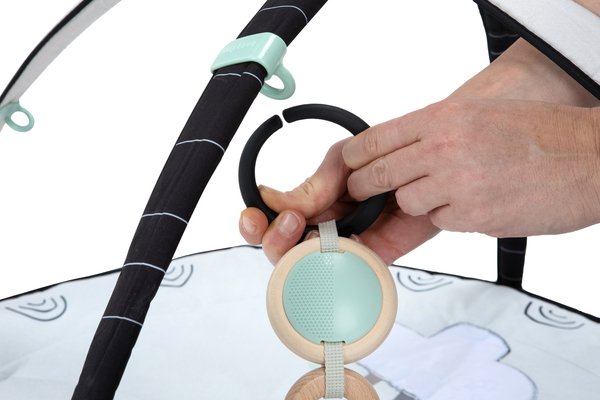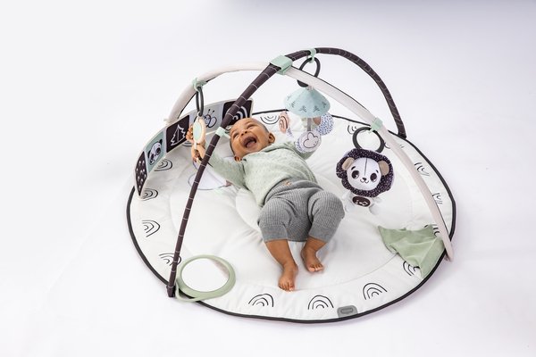 Розвиваючий килимок з дугами День-ніч – це багатофункціональний килимок, який забезпечить вашій дитині безліч можливостей для гри і розвитку. З однієї сторони килимок має контрастний чорно-білий дизайн, який допомагає розвивати зір немовлят у перші місяці життя. З іншого боку, він прикрашений яскравими кольорами та веселіми персонажами для стимуляції розвитку дрібної моторики і органів чуття.