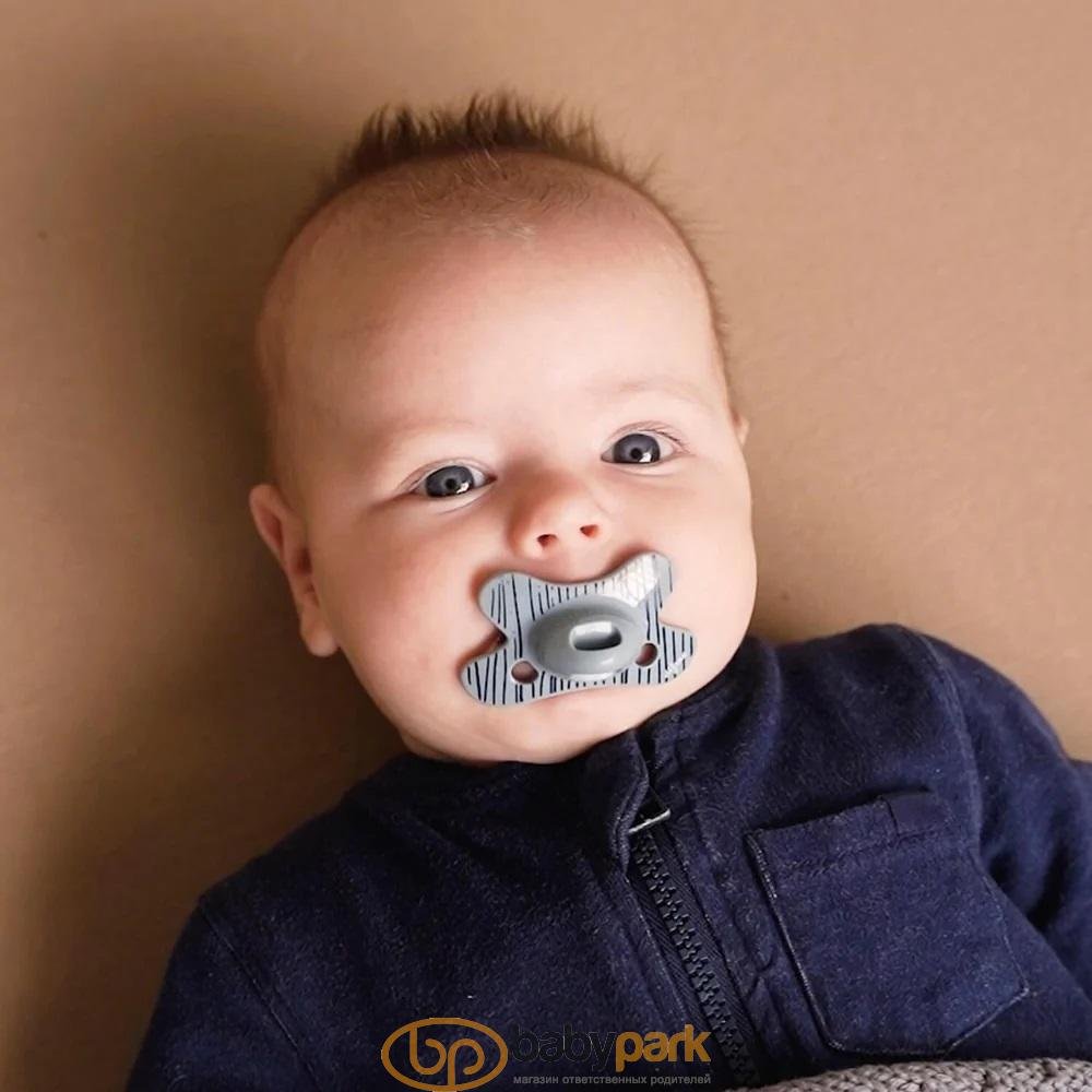 Завдяки анатомічній формі, ця модель підтримує правильне положення язика та сприяє здоровому розвитку ротової порожнини, запобігаючи деформації зубів та щелепи. Вишуканий дизайн у стриманому відтінку Stone Lines робить пустушку стильним і практичним аксесуаром для немовлят.