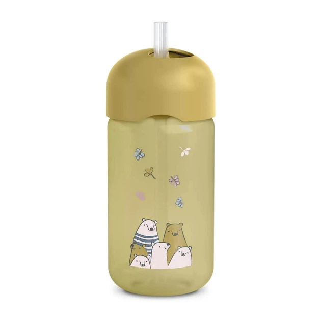 Пляшка із трубочкою, 340 мл, +18 місяців, Bear Family /жовта (8426420086769)
