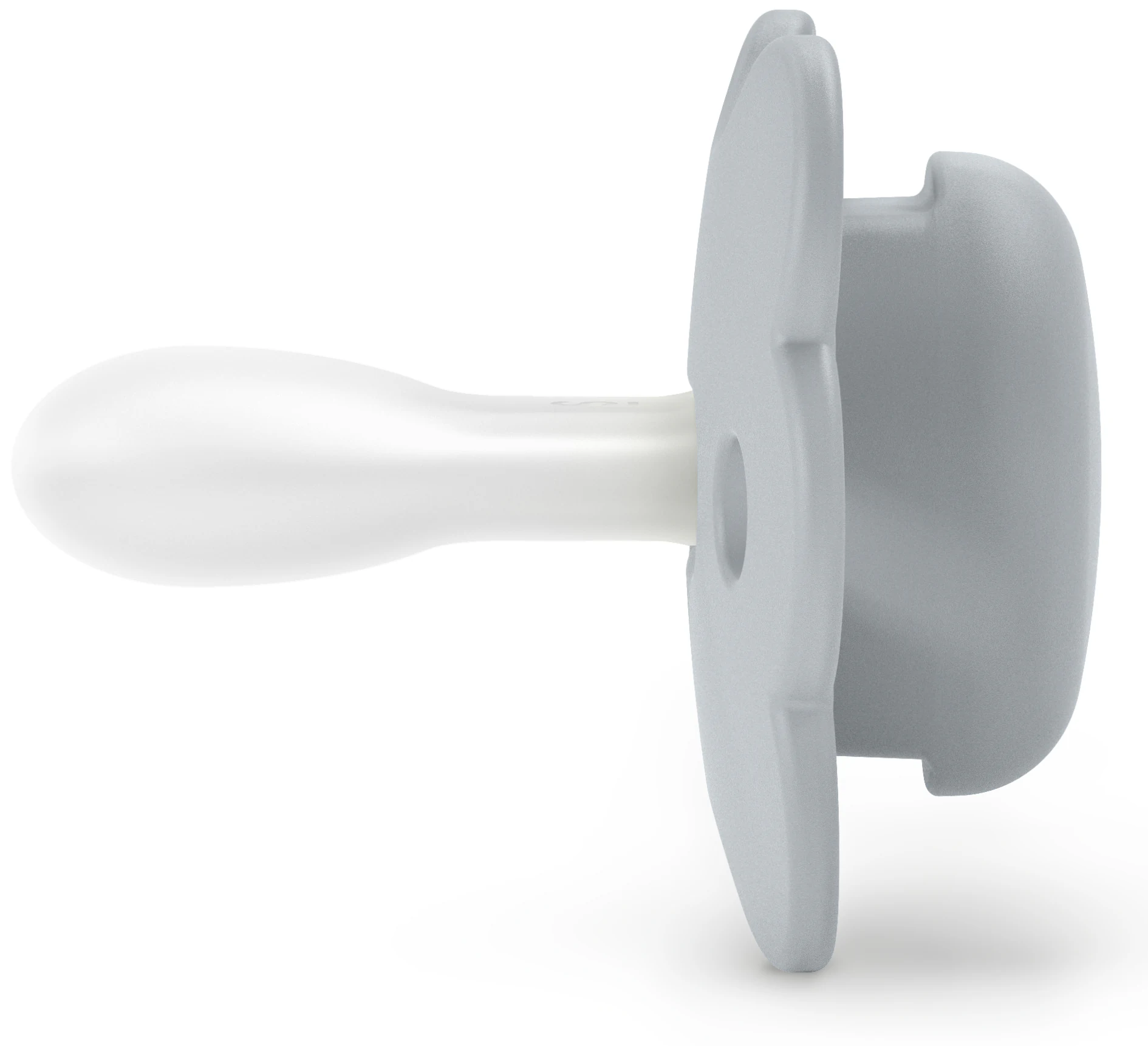 • Фізіологічна силіконова соска: Плоска та симетрична форма соски дозволяє їй завжди правильно розташовуватися в роті малюка, чинячи мінімальний тиск на піднебіння. Це критично важливо для правильного розвитку щелепи в період активного прорізування зубів.
