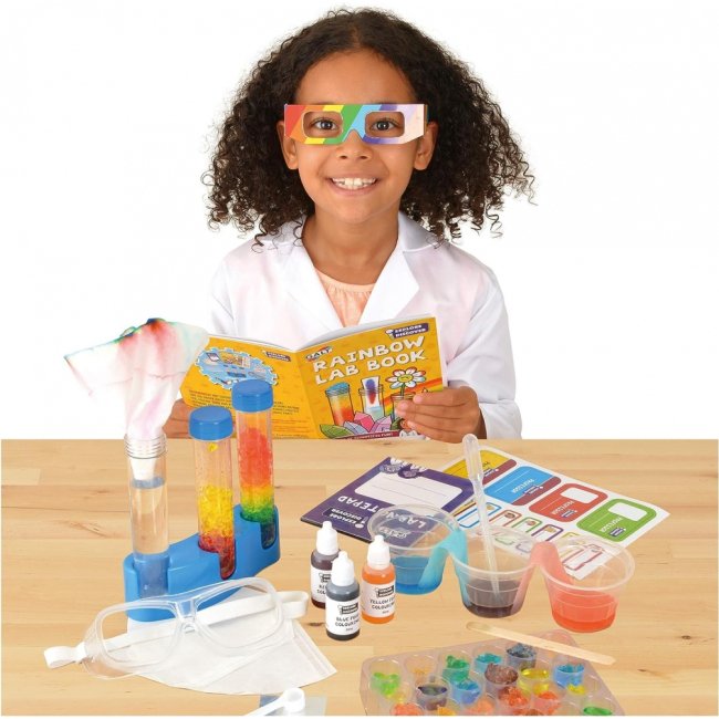 Набір для дослідів Galt “RAINBOW LAB” – це захоплююча лабораторія, де ви зможете експериментувати з кольорами та вирощувати дивовижні желеоподібні кристали у різних кольорах. За допомогою цього набору ви також зможете створити веселку в пробірці та спостерігати за світом через веселкові окуляри.