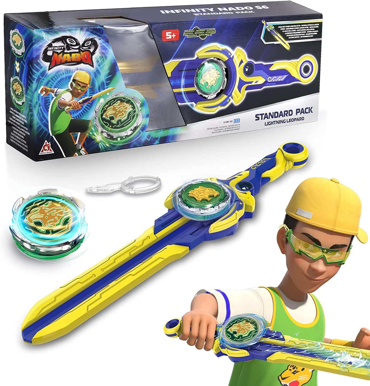 Цей дзига Infinity Nado ти зможеш запустити за допомогою меча-пускової установки Standard, довжиною 39 см. Меч дозволить максимально ефектно та точно запустити блейд на арену. Крім зовнішнього вигляду, ряд змін зазнав і метод встановлення та прискорення дзиги. Тепер процес встановлення та фіксації дзиги в лаунчері став ще простіше, а прискорення відбувається за новим принципом, що забезпечує високий контроль та приголомшливу потужність запуску.