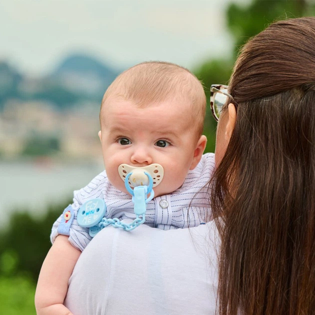 Надійна фіксація: Кліпса міцно закріплюється на одязі дитини, не пошкоджуючи тканину, і гарантує, що пустушка не впаде, навіть якщо малюк активно рухається.