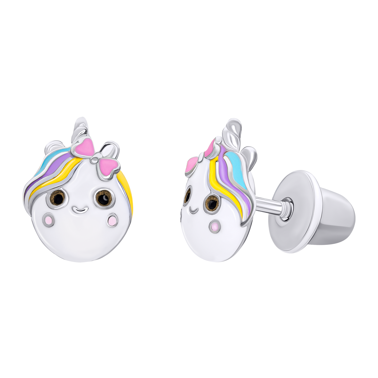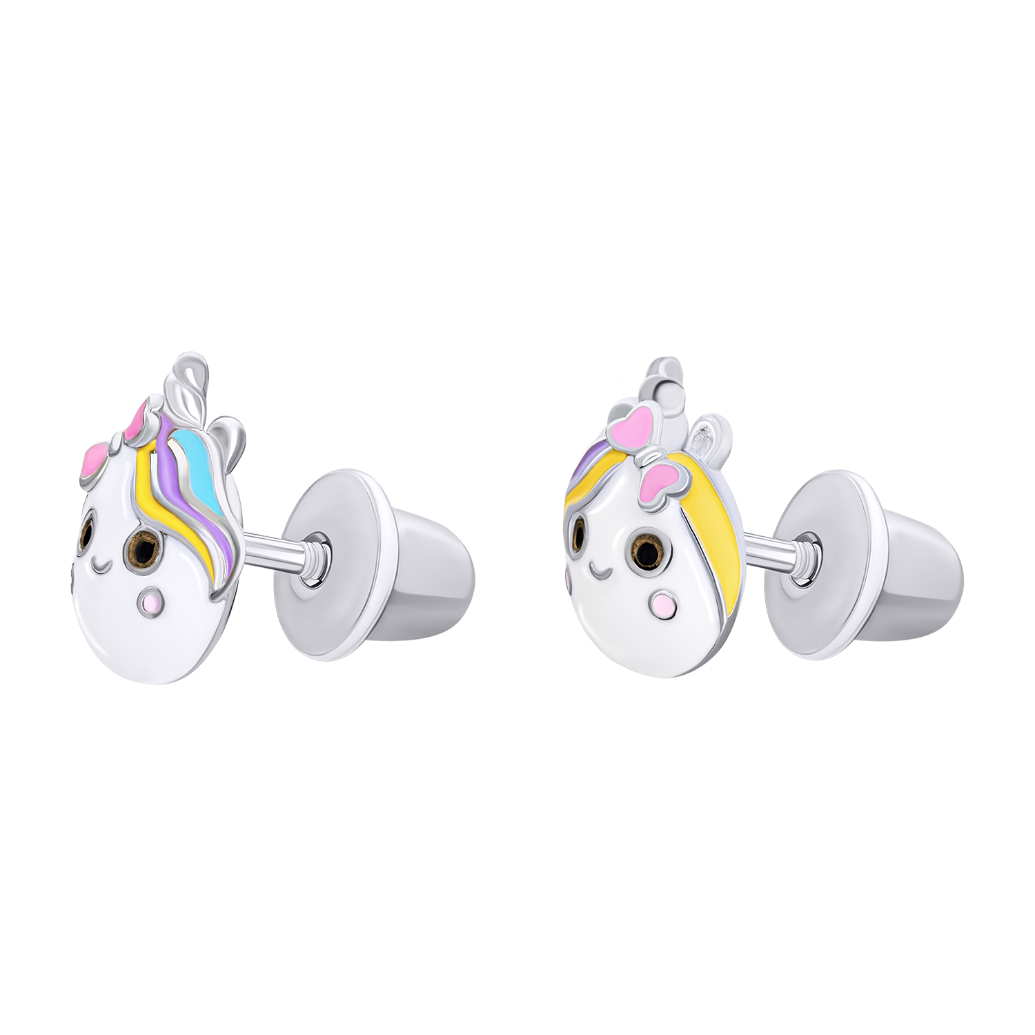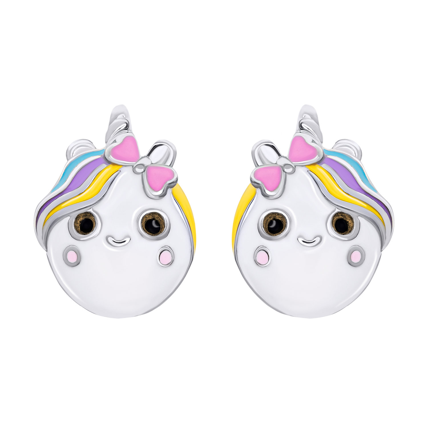 Сережки-пусети Єдиноріжка з різнобарвною емаллю