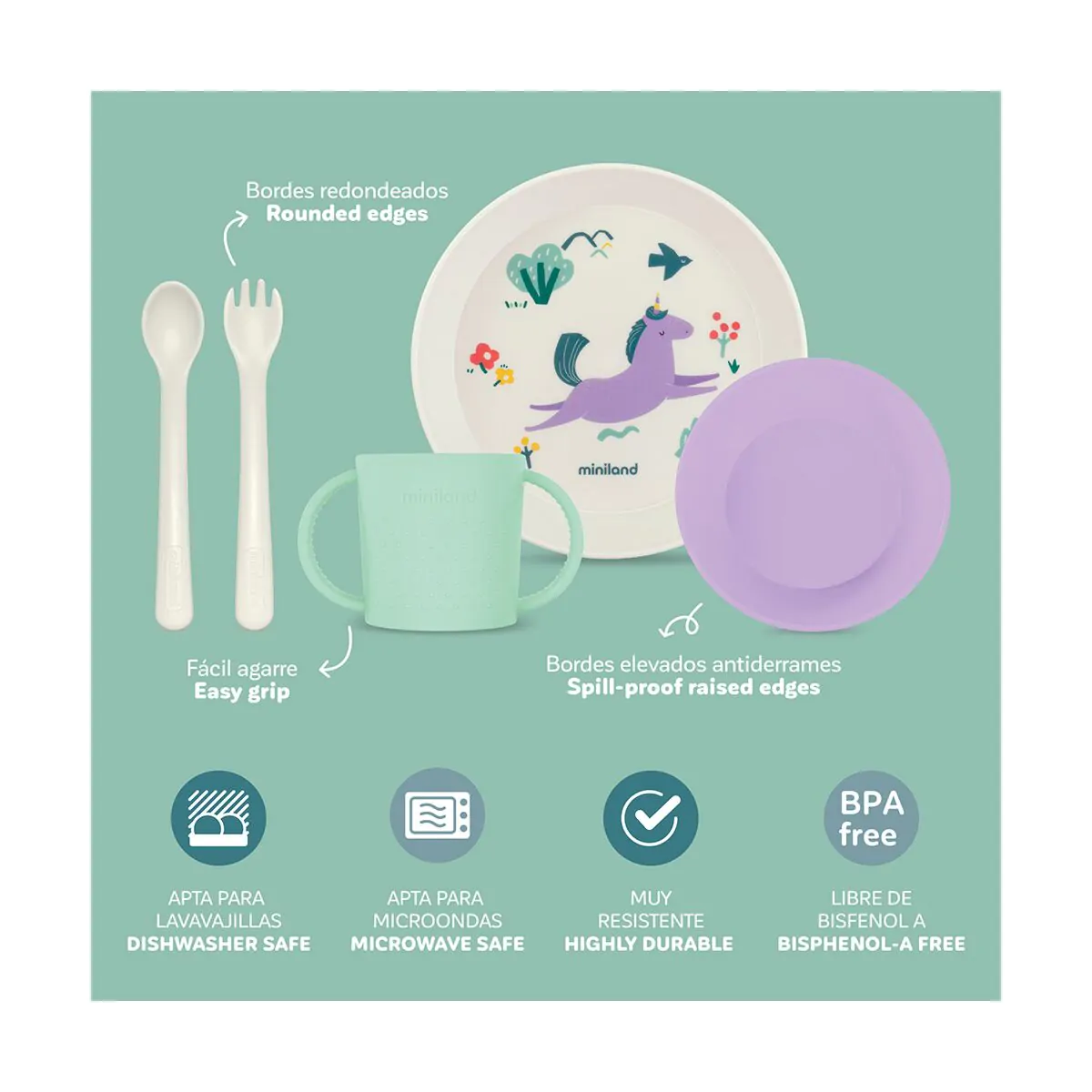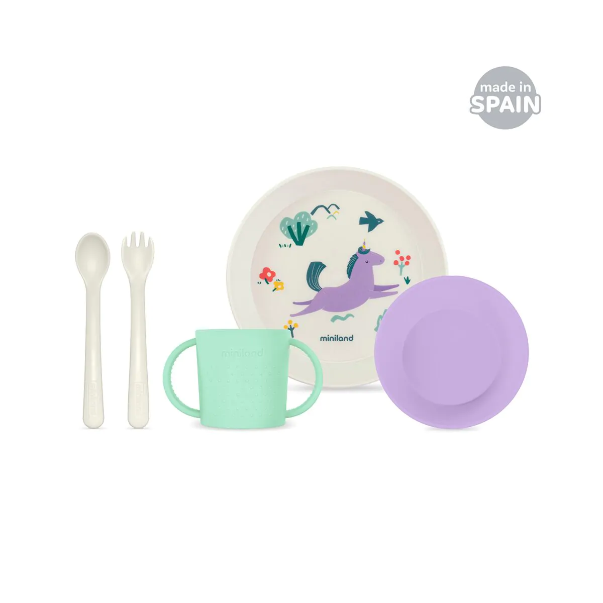 Набір дитячого посуду на 5 предметів Miniland Dream — безпека та комфорт для малюка під час прийому їжі