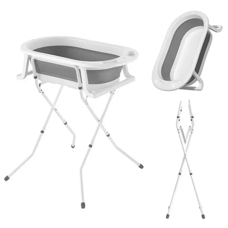 - Компактна та складна конструкція: Завдяки спеціальному механізму, ванночка легко складається до плаского стану. Це дозволяє без проблем зберігати її в невеликих приміщеннях або брати з собою в подорожі.