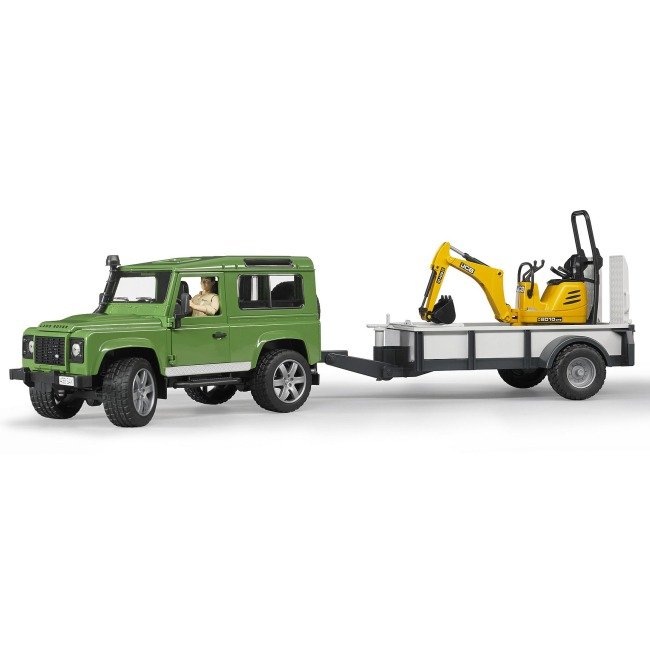 Набір іграшковий. Автомобіль Land Rover Defender з причіпом, мікро-екскаватором JCB та фігуркою