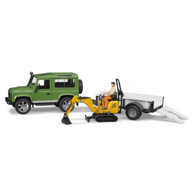 Набір іграшковий: Автомобіль Land Rover Defender з причепом, мікро-екскаватором JCB та фігуркою