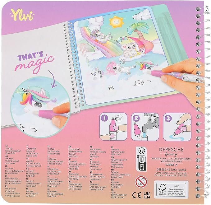 - Повторюйте на різних сторінках, щоб відкрити весь чарівний світ Ylvi, а коли сторінки висохнуть — можна розфарбовувати знову.