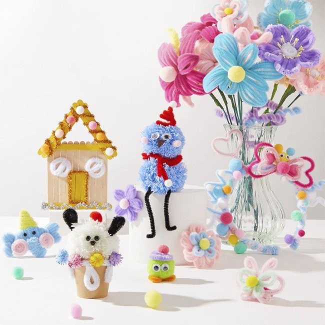 Цей набір є справжнім скринькою скарбів для творчості. Він містить різноманітні матеріали для створення аплікацій, фігурок, карток, прикрас та багатьох інших виробів, стимулюючи уяву та дрібну моторику.
