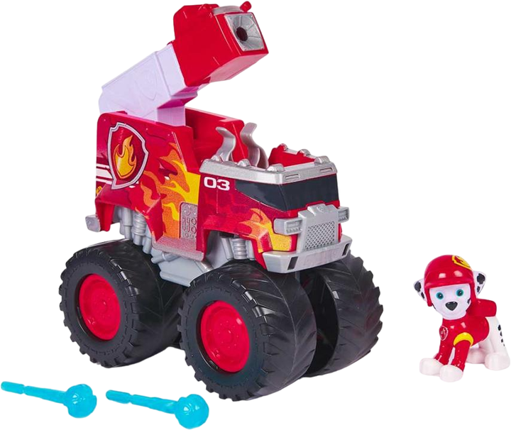 - Пускова установка: Машина Маршала оснащена пусковою установкою та двома “водними” снарядами (снарядами-проєктилями). Це дозволяє дитині відтворити гасіння уявного вогню.