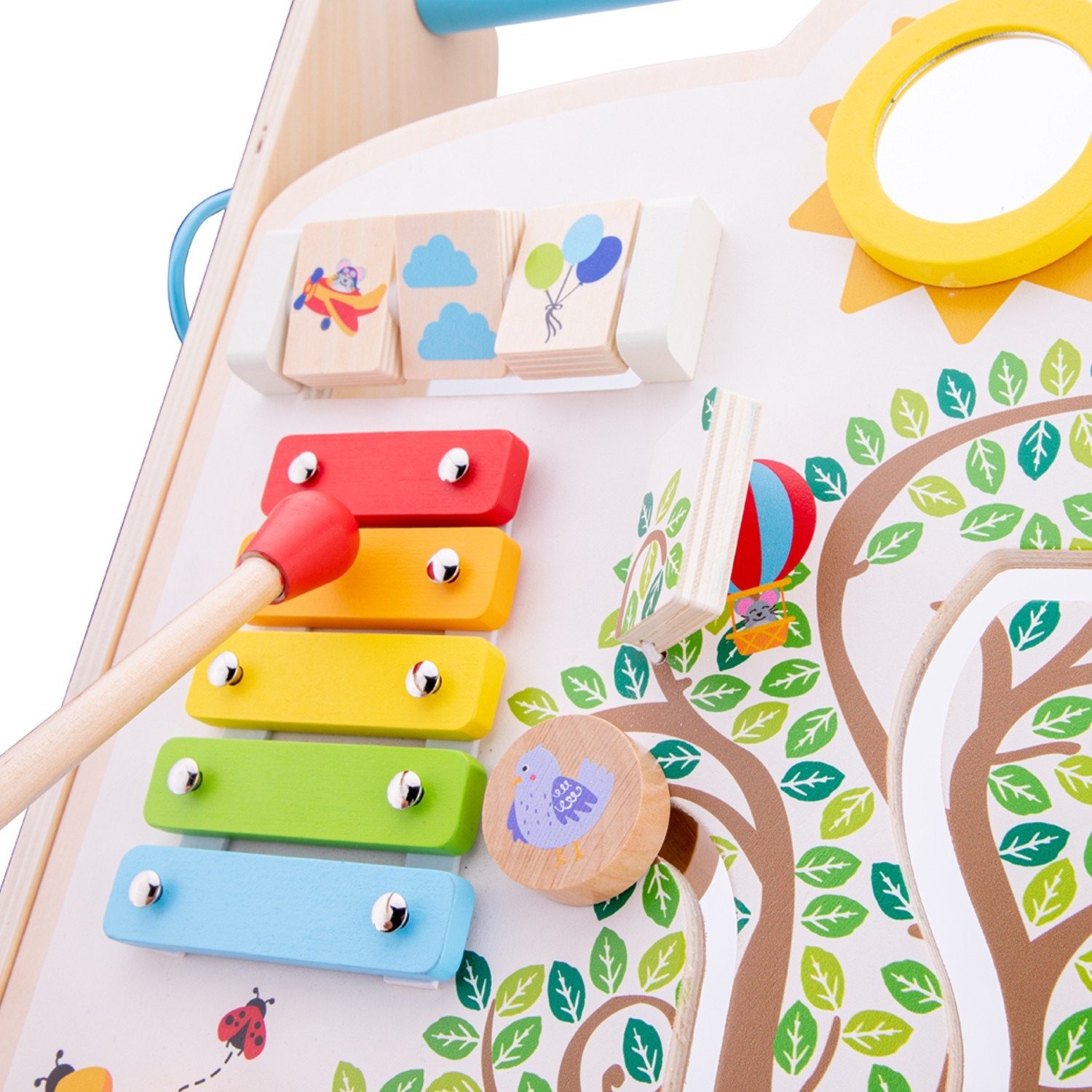 Багатофункціональний ігровий центр. На панелі зазвичай розташовані: ксилофон для музичних занять дзеркальце сортер лабіринт із фігурками та рухомі шестерні.