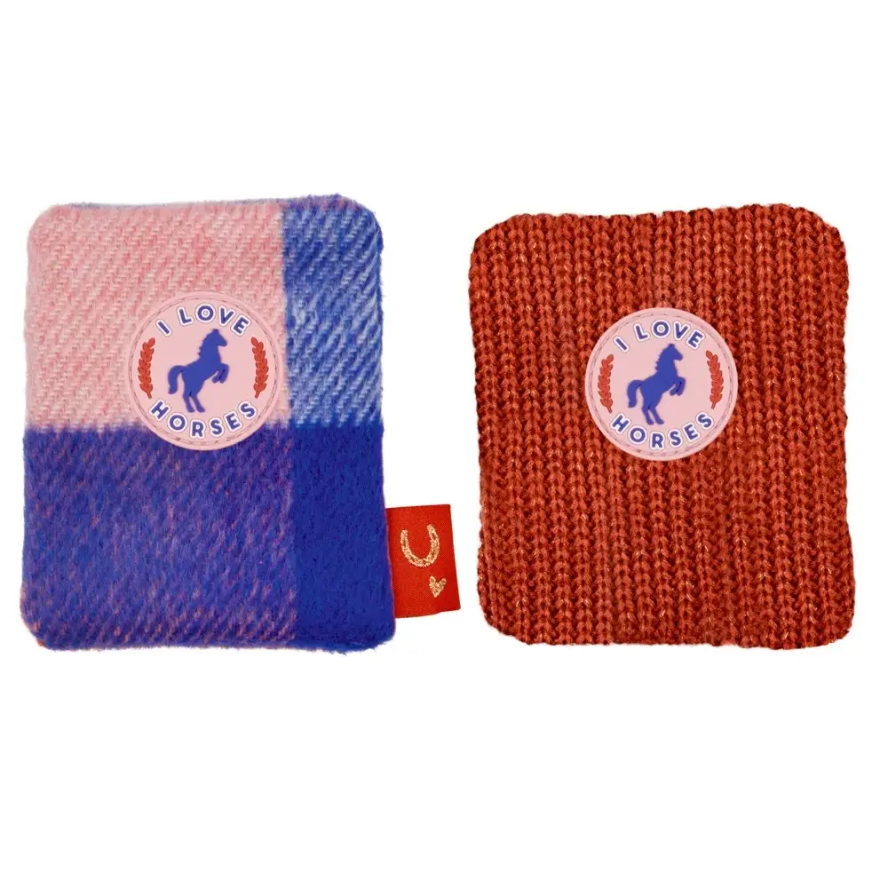 - Дизайн: Грілочка має знімний чохол, прикрашений зображеннями коней та написами, як-от «I Love Horses». Зазвичай доступна в кількох дизайнах та кольорах (наприклад, рожевому або фіолетовому).
