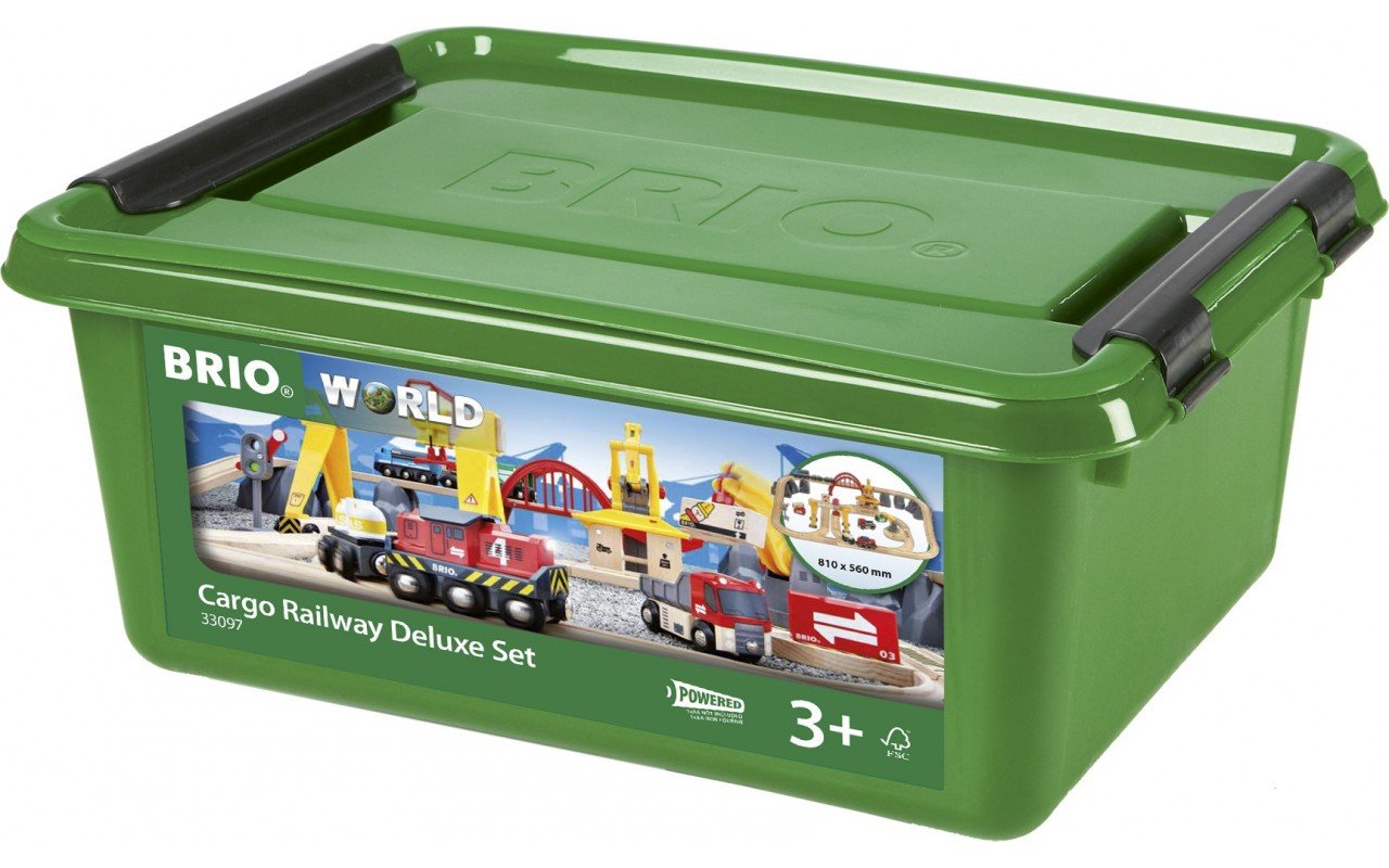 Цей дивовижний набір Cargo Railway Deluxe від BRIO (33097) є одним із двох найбільших дерев’яних залізниць цього бренду! Він є унікальним і завдяки безлічі механічних функцій, які разом із вантажною тематикою допоможуть створити Вашому малюку захоплюючі ігрові сюжети. Залізницю можна розширити іншими системами та елементами бренду BRIO.