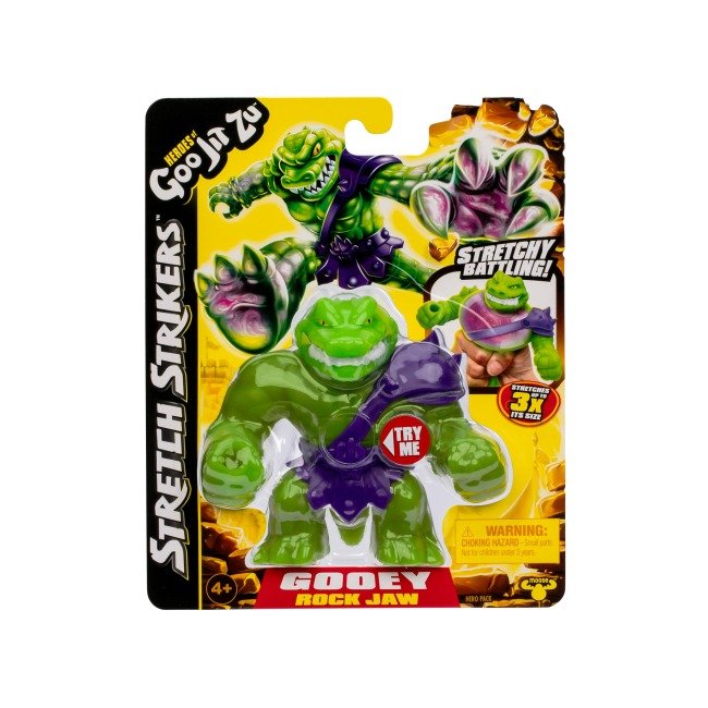 Готуйтеся до кам’яної міцності! Рок Джо (Rock Jaw) повертається в новій бойовій серії «Stretch Strikers». Цей підступний мутант-крокодил завжди був головним суперником героїв Гу-джитсу, а тепер він став ще потужнішим. Його залізна хватка та неймовірна здатність до розтягування роблять його небезпечним противником у будь-якій сутичці.