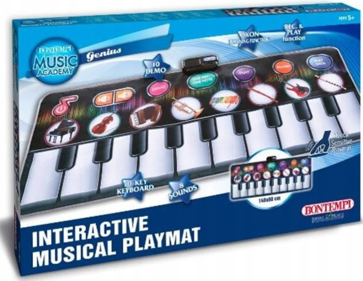 - Розвиток та навчання. Гра на килимку стимулює розвиток дрібної та великої моторики, координації рухів, відчуття ритму та музичного слуху. Дитина в ігровій формі вивчає ноти та звуки, що допомагає формувати її музичні здібності.