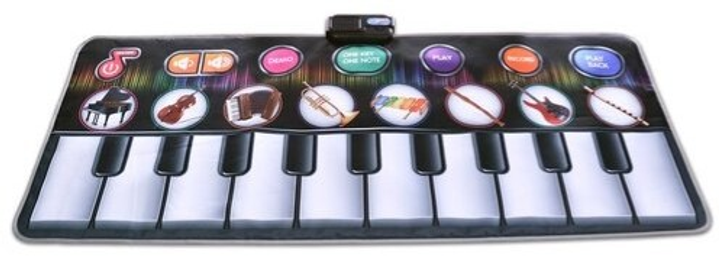 - Музичні можливості. Килимок оснащений сенсорними клавішами, що відтворюють звуки, коли на них наступають. Він може імітувати різні музичні інструменти, такі як піаніно, гітара, саксофон, а також мати вбудовані демо-мелодії та різні ритми. Це дозволяє дитині створювати власні композиції.