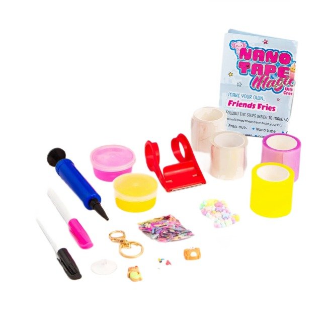 Нано-стрічка (Nano Tape) – це особливий вид клейкої стрічки, яка відрізняється надзвичайною клейкістю, міцністю та еластичністю. Вона прозора, водонепроникна і може бути використана для створення повітряних пухирців (за допомогою фена або насоса), а також для кріплення легких предметів. У цьому наборі вона використовується як основний матеріал для ліплення.