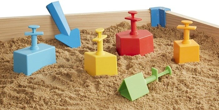 Унікальні форми. На відміну від звичайних відер, форми з цього набору мають складну текстуру, що дозволяє створювати фігури з чіткими деталями: від морських коників до елементів середньовічних замків.