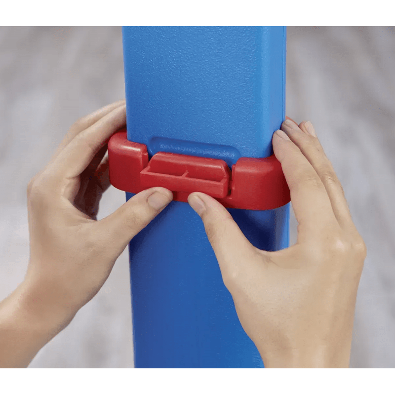 - Унікальна система регулювання дозволяє легко змінювати висоту кільця в діапазоні від 76 см до 122 см. Це означає, що набір ідеально адаптується під зріст дитини на різних етапах її розвитку, забезпечуючи комфортну та ефективну гру протягом багатьох років.
