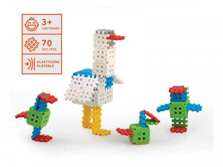 Універсальна кількість Набір містить 70 різнокольорових елементів, чого цілком достатньо для побудови будиночків, тварин, транспорту або абстрактних фігур