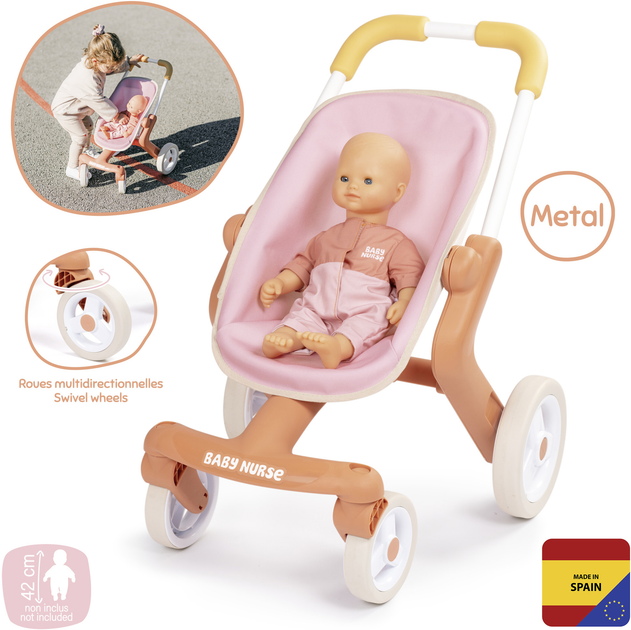 Коляска для ляльки Baby Nurse Теракотова пудра. Прогулянка , з поворотними колесами, 18 міс.+