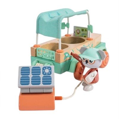 Очищуйте дерев’яні деталі сухою або злегка вологою тканиною. Не залишайте іграшку під прямими сонячними променями надовго, щоб зберегти насиченість кольорів.