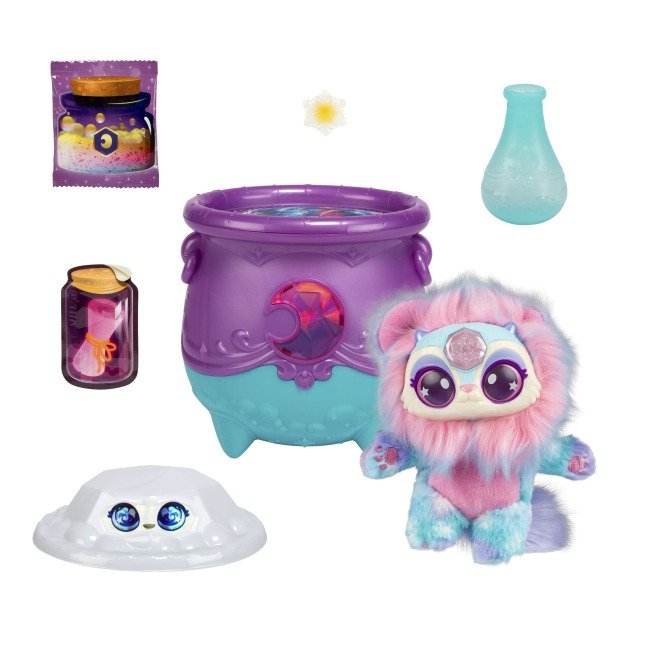 4. Поява Міксі: Коли туман розсіюється, всередині казана з’являється плюшевий інтерактивний Міксі (Mixie) — чарівний вихованець-сюрприз.