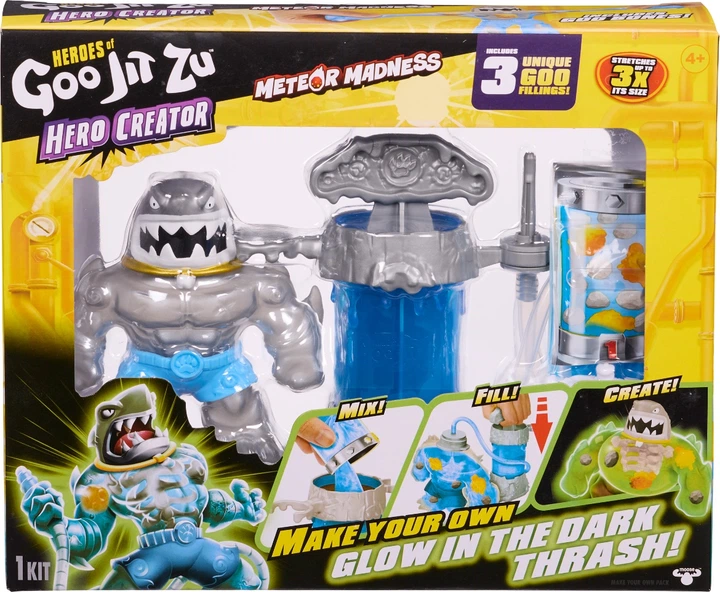 Приготуйтеся до «рентгенівської» атаки! Найпопулярніший герой GooJitZu, акула Траш (Thrash), повертається у новому приголомшливому форматі. У цій спеціальній версії він не просто розтягується — він демонструє свою внутрішню силу в прямому сенсі! Завдяки унікальному наповнювачу та ефектам, Траш став ще небезпечнішим для ворогів та ще цікавішим для гри.