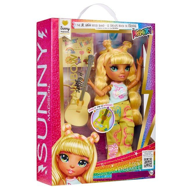 Зустрічайте запальну та сонячну Санні Медісон у абсолютно новому амплуа! У серії Junior High Rockband ми бачимо Санні ще ученицею молодшої школи, яка вже тоді марила великою сценою. Тепер її фірмовий жовтий колір поєднується з драйвовим стилем рок-зірки. Ця лялька — ідеальний мікс дитячої безпосередності та крутого музичного вайбу.
