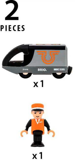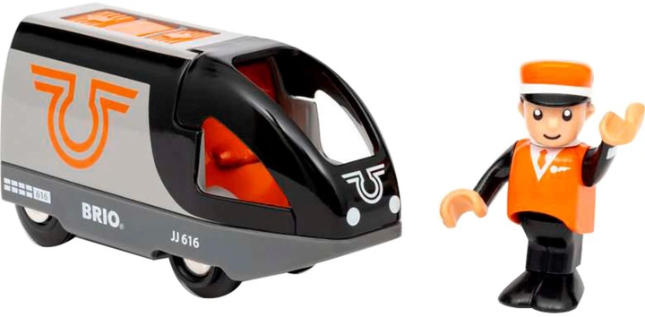 Пасажирський поїзд на батарейках — це сучасний і швидкий транспортний засіб, який стане серцем залізничної мережі BRIO World. Завдяки вбудованому двигуну поїзд здатний самостійно долати підйоми, проходити крізь тунелі та перевозити пасажирів між станціями без допомоги рук дитини.