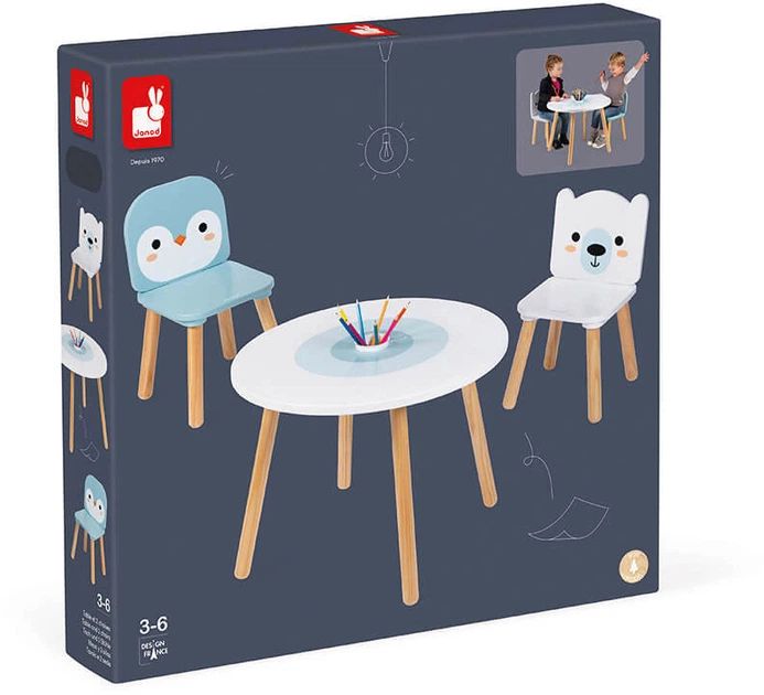 Дитячий стіл та 2 стільчики Janod «Ведмедик та Пінгвін» (J09650)
