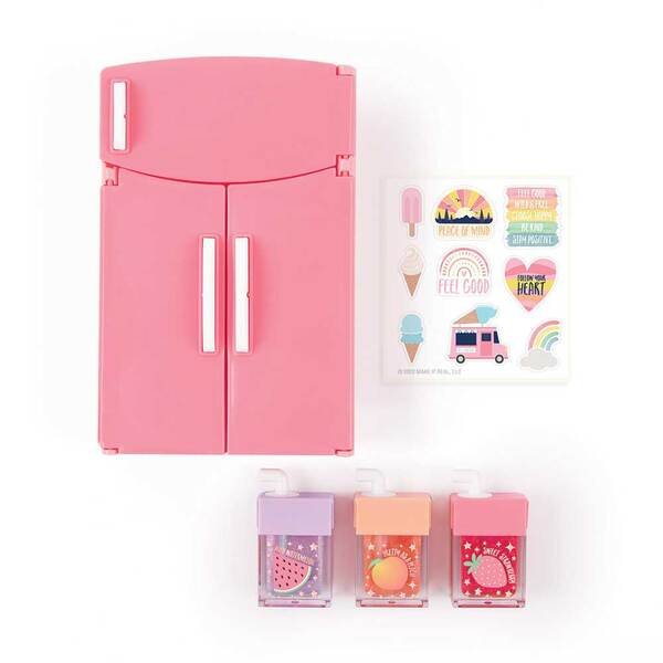 Цей набір відрізняється стильним та трендовим контейнером, який імітує мініатюрний холодильник, що є не лише органайзером, але й ігровим елементом.