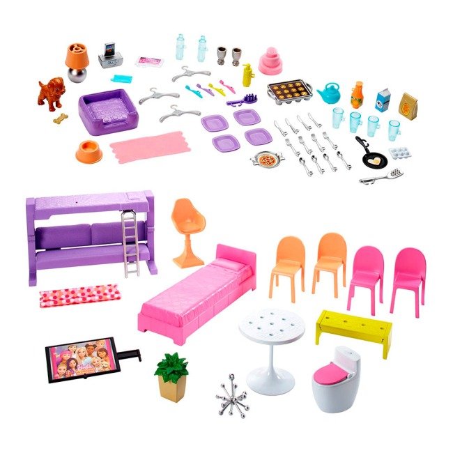 • Робочий ліфт. Механічний ліфт здатний вмістити до чотирьох ляльок або Барбі на інвалідному візку забезпечуючи легке пересування між поверхами.