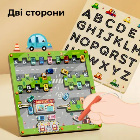 Як грати Ви виставляєте машинки на ігровому полі так, як показано на картці із завданням. Кожна машина може рухатися лише по своїй лінії: горизонтальні — вліво-вправо, вертикальні — вгору-вниз. Підіймати машини або перестрибувати через них не можна. Виграш настає тоді, коли шлях стає вільним і ви виводите головне авто за межі поля.