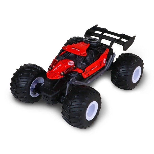 Модель працює на цифровій частоті 2,4 ГГц яка виключає конфлікти сигналів при одночасному використанні декількох іграшок. Живлення від літій іонного акумулятора 3,7 V гарантує стабільну вихідну потужність для швидкого прискорення та впевненого подолання перешкод. Посилена рама та продумана геометрія колісних арок дозволяють машинці легко маневрувати на піску траві чи нерівній дорозі.