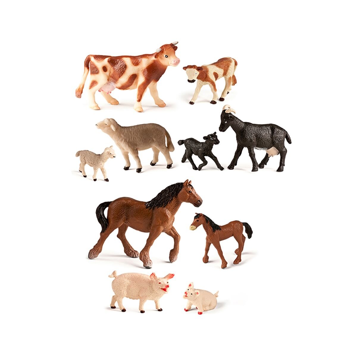 Концепція «Мама та малюк». Набір містить пари дорослих особин та їхніх дитинчат. Це дозволяє дитині вчитися порівнювати розміри (великий/маленький) вивчати назви тварин та їхнього потомства наприклад корова та теля.
