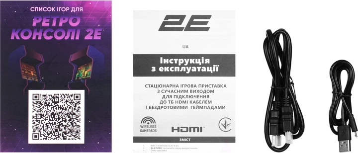 • Комплектація: Консоль, 2 геймпади, HDMI-кабель, USB-кабель живлення, інструкція.