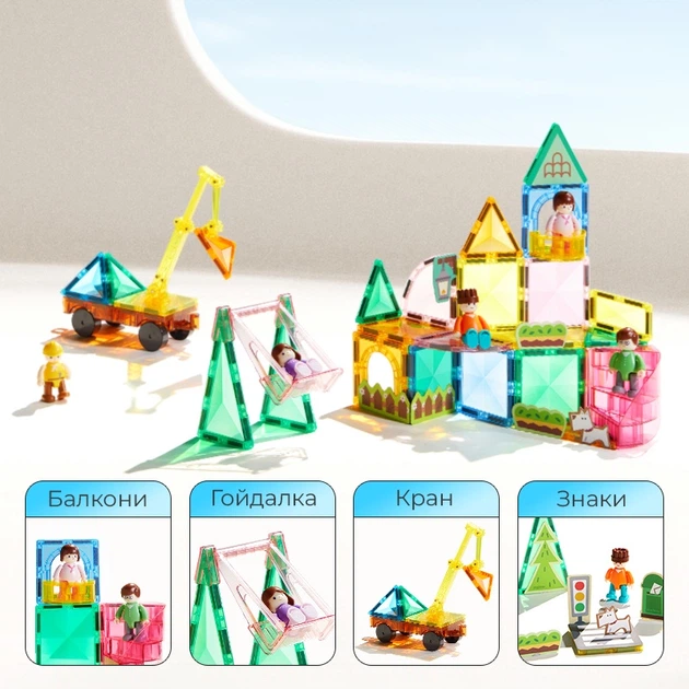 На відміну від класичних наборів, цей конструктор містить тематичні елементи та наклейки, які дозволяють дитині повністю зануритися в рольову гру. Деталі сумісні з іншими магнітними наборами Colorful Tiles, що відкриває безмежні можливості для розширення міста.