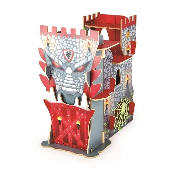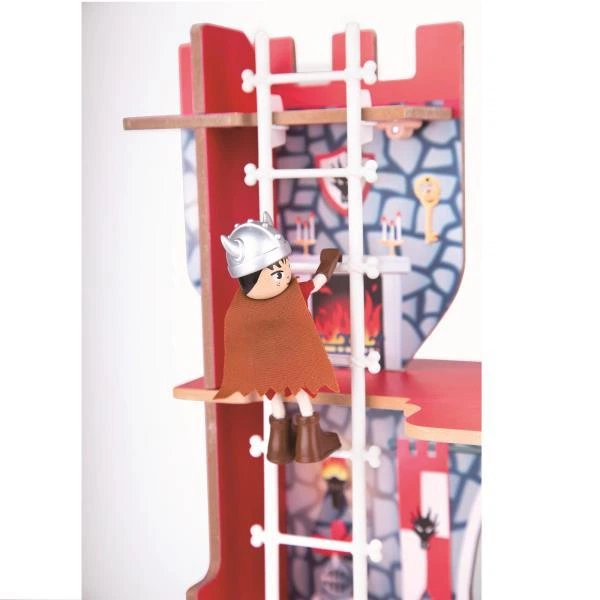 Дворівнева конструкція Замок має два поверхи та відкрите планування, що забезпечує зручний доступ до внутрішніх приміщень. Дитина може розміщувати фігурки на оглядових вежах, у головній залі або біля підніжжя фортеці.