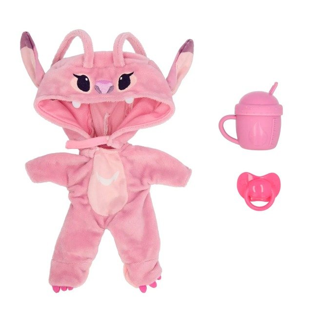 Ексклюзивний дизайн Disney: Енджел одягнена у впізнаваний рожевий костюмчик зі своїми характерними вушками та антенами. Вбрання виконане з м’якого текстилю і легко знімається.