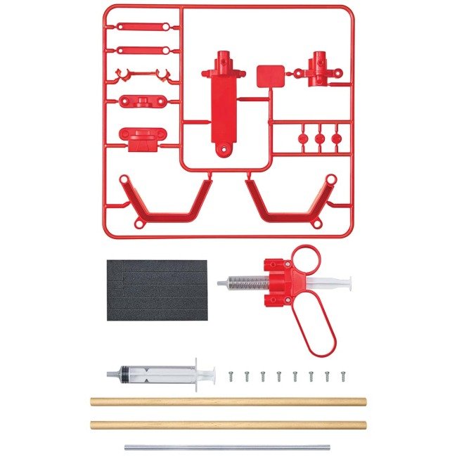 Покрокова інженерна збірка До комплекту входять усі необхідні деталі: важелі, кронштейни, трубки, поршні та детальна ілюстрована інструкція. Процес складання допомагає дитині зрозуміти, як окремі вузли поєднуються в складну механічну систему, розвиваючи навички конструювання.