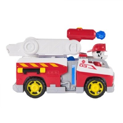 Машина виконана у традиційному червоному кольорі з білими елементами та логотипами пожежної служби. У комплекті з автомобілем йде фігурка Маршала в його спеціальному захисному костюмі. Особливістю цієї моделі є наявність рухомих елементів, таких як висувна пожежна драбина, що допомагає дістатися до важкодоступних місць. Ця іграшка ідеально підходить для відтворення ключових сцен із мультфільму, де Маршал проявляє свою відвагу та вправність.