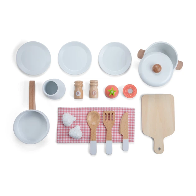 Кухня виготовлена з високоякісної деревини та пофарбована безпечними нетоксичними фарбами. Кожна деталь конструкції ретельно відшліфована що гарантує безпеку під час активного використання. Попри приставку «міні» набір оснащений усіма атрибутами справжньої кухні: від плити та духовки до мийки з краном що робить процес приготування уявних страв максимально реалістичним та захопливим.