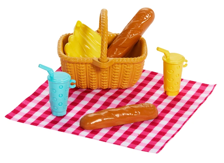 Класичний кошик для пікніка: Головний аксесуар набору — яскравий кошик, який відкривається і дозволяє зберігати всередині іграшкову їжу та посуд.