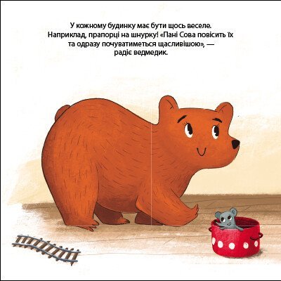 Книга Ведмедик Фредді прикрашає будинок пані Сови входить до інтерактивної серії для малят Друзі з лісу. Сюжет розповідає про добрі справи лісових мешканців та важливість взаємодопомоги. Головний герой ведмедик Фредді вирішує допомогти своїй сусідці пані Сові зробити її оселю затишною та святковою. Видання поєднує в собі цікаву розповідь та ігрові елементи у вигляді таємних віконець які приховують цікаві деталі лісового побуту.