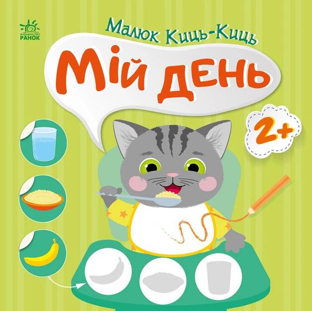 Видання Мій день із серії Малюк Киць Киць це навчальна книжка картонна створена для ознайомлення найменших дітей із поняттям розпорядку дня. Головний герой кошеня на ім’я Киць Киць демонструє малюкові звичні щоденні ритуали допомагаючи структурувати уявлення про час та послідовність дій. Книга розроблена для раннього розвитку та сприяє легкій адаптації дитини до режиму через гру та візуальні образи.