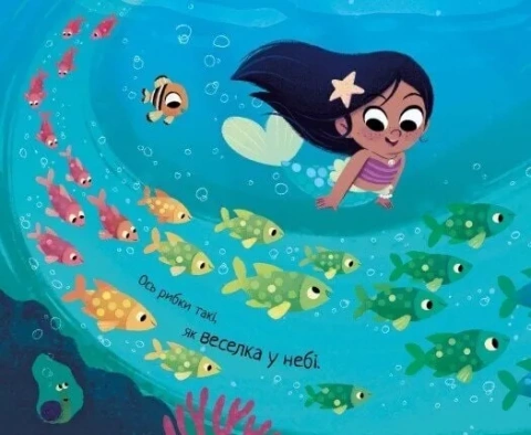 • Яскраві ілюстрації з переважанням заспокійливих синіх та бірюзових відтінків