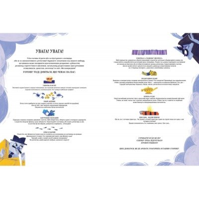 Це видання створене для тих, хто обожнює таємниці, загадки та пошук прихованих доказів. Кожна сторінка — це новий ігровий рівень із деталізованими ілюстраціями, на яких заховано ключі до розгадки. Книга ідеально підходить як для самостійного проходження, так і для командної гри з друзями чи батьками.