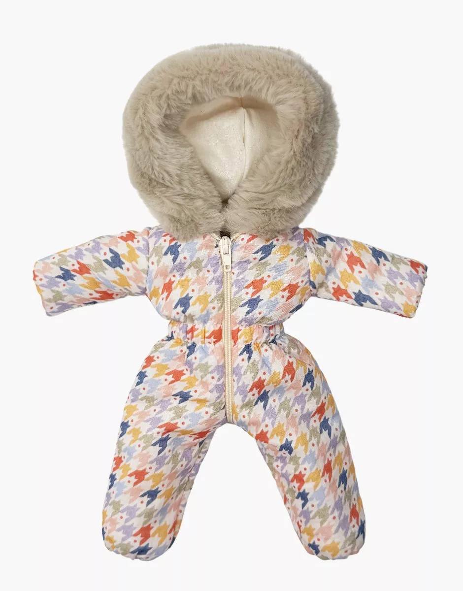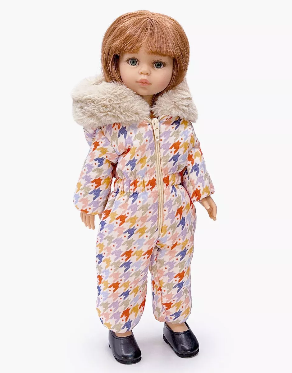 Лижний костюм Gigi з принтованої бавовни з обробкою зі штучного хутра для ляльок Amigas розміром 32 см.